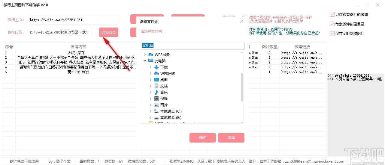2、进入微博主页图片下载助手界面可以获取微博图片并下载